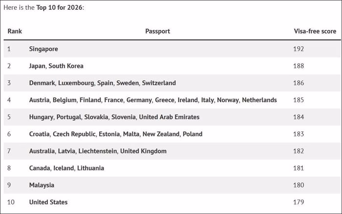 Như vậy, sức mạnh của hộ chiếu Singapore không chỉ là một danh hiệu, mà còn là công cụ thực tiễn giúp người dân quốc gia này mở rộng cơ hội học tập, làm việc và khám phá thế giới.