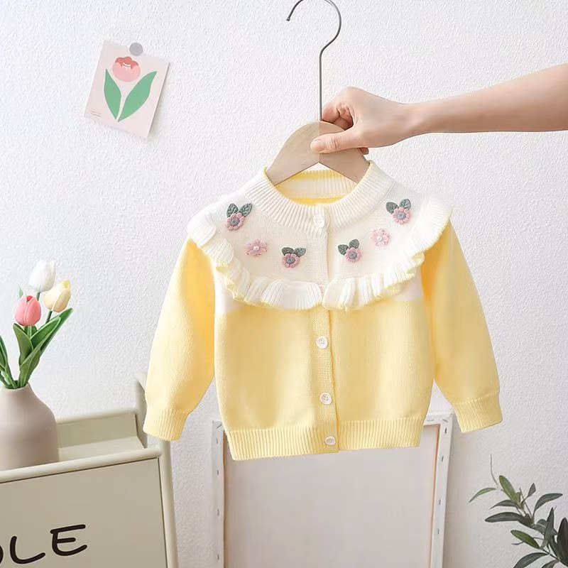 🔥 Áo len phong cách mùa xuân thu cho bé gái dệt kim dễ thương thêu ngoài đang giảm giá!