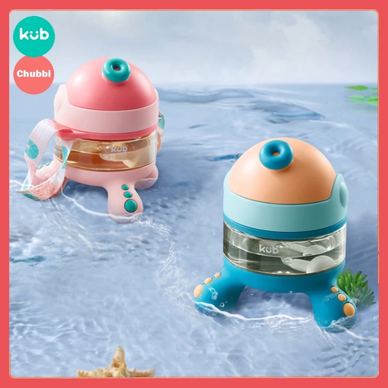 - Thiết kế: Bình hình bạch tuộc có van chống sặc và dây đeo, giúp bé uống nước an toàn và dễ dàng hơn.