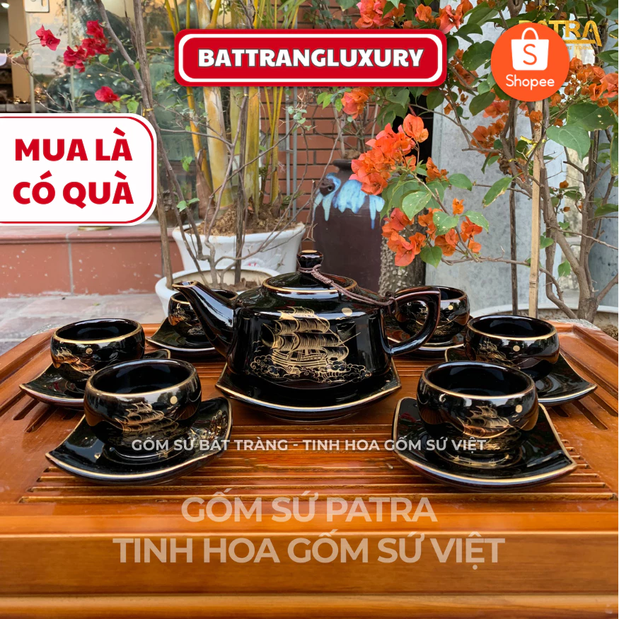 🔥 Bộ Ấm Chén Uống Trà, Bộ Ấm Chén Bát Tràng Cao Cấp – Thuận Buồm Xuôi Gió Đen Bóng đang giảm giá!