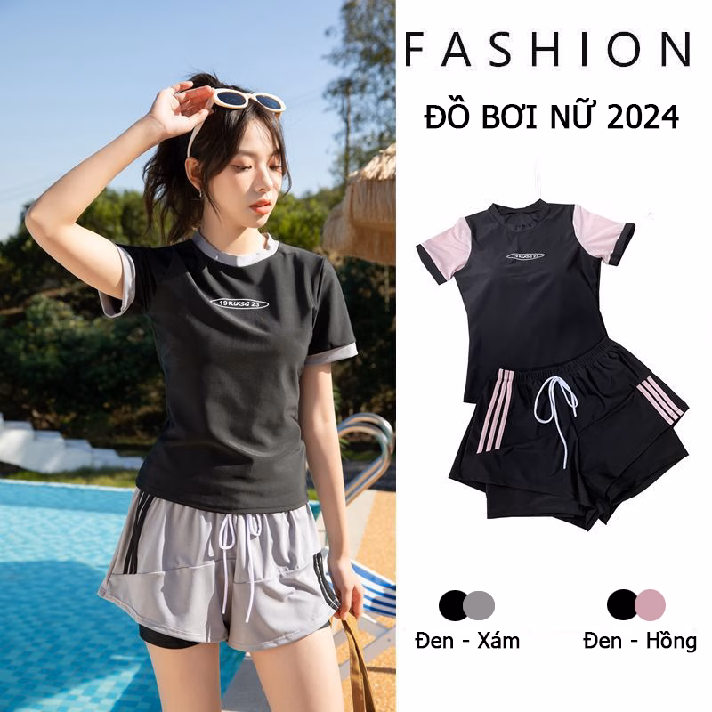 🔥 Đồ bơi nữ 2 mảnh ( MS-02 ) gồm quần đùi và áo ngắn tay phối màu đẹp phù hợp đi biển, hồ bơi đang giảm giá!