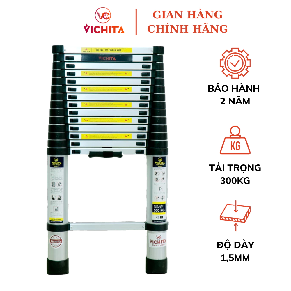 🔥 Thang Nhôm Rút VICHITA Từ (2.6M – 5.4M) Nhập Khẩu – Tặng 2 Chốt Thang – Ống Thang Nhôm Liền Khối, Không Có Ngấn Nối đang giảm giá!