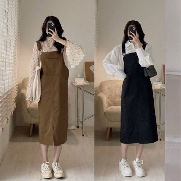 🔥 Váy Giả Yếm Phong Cách Pháp Mới Mùa Thu Đông, Thanh Lịch, Thon Gọn Eo Cho Sinh Viên Nữ, Phong Cách Đại Học – Hàng Order đang giảm giá!
