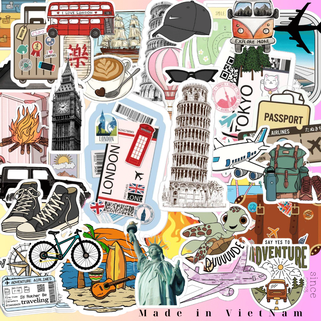 🔥 100 sticker du lịch dán vali nón bảo hiểm sổ tay ly nước ốp lưng siêu đẹp đang giảm giá!