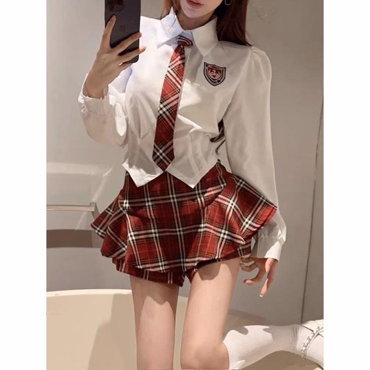 🔥 Đồng phục JK ngọt cay với áo sơ mi ngắn và váy xếp ly đang giảm giá!