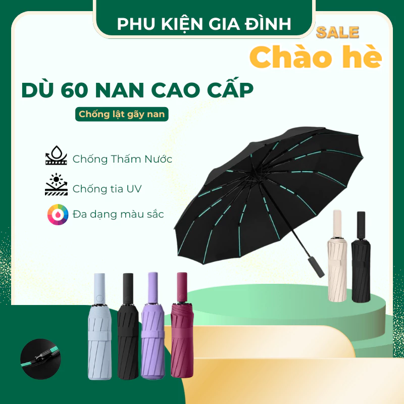 🔥 Dù Che Mưa Gấp Gọn Ô Đi Nắng 60 Nan Chắc Chắn Chống Gió Giật Dùng Cho 2 Người đang giảm giá!