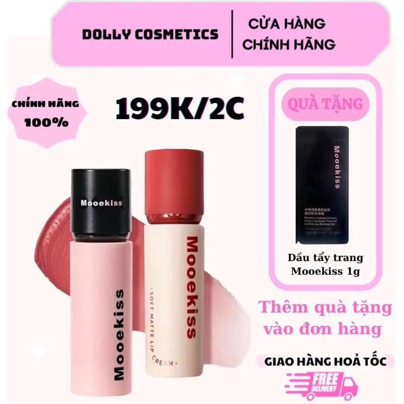 🔥 Son kem bùn MOOEKISS Velvet Lip Mud tint lì 3g mềm mịn lâu trôi không khô môi bản vỏ hồng đen DOLLYDOLLY COSMETICS đang giảm giá!