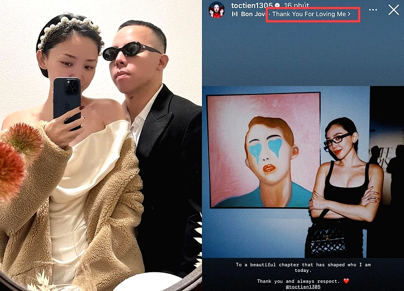 Vào sáng hôm sau, Tóc Tiên chia sẻ lại bài đăng của Touliver và đính kèm ca khúc Thank You for Loving Me (dịch: “Cảm ơn vì đã yêu em”). Không có lời giải thích dài dòng, chỉ qua một giai điệu và hành động chia sẻ, cô đã truyền tải thông điệp rằng tình cảm và sự biết ơn vẫn còn tồn tại dù mối quan hệ đã chấm dứt. Đây là lần hiếm hoi sau nửa năm cô tương tác công khai với Touliver trên mạng xã hội.