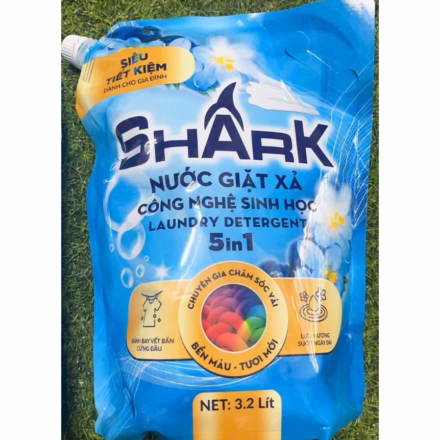 🔥 [Giá rẻ] Nước giặt xả shark công nghệ sinh học đánh bay vết bẩn, hương thơm mềm mại 3,2L (Túi) đang giảm giá!